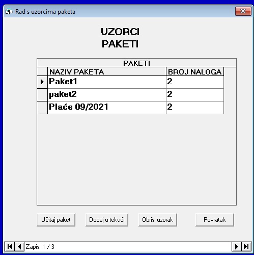 određenog formata datoteke (Unicredit, Raiffeisen, …). Pakete i naloge spremimo i kasnije po potrebi učitamo.